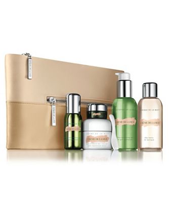 セレブの間でも人気の高級クリームの『クレーム ドゥ・ラ・メール』、お肌をしっとり、きめが整った肌へと促す『ザ・モイスチャライジング ソフト クリーム』、お肌に素早く溶け込みやすい『ザ・モイスチャライジング ジェル クリーム』この三つから一つと、クレンジングやトニックなどのセットです。